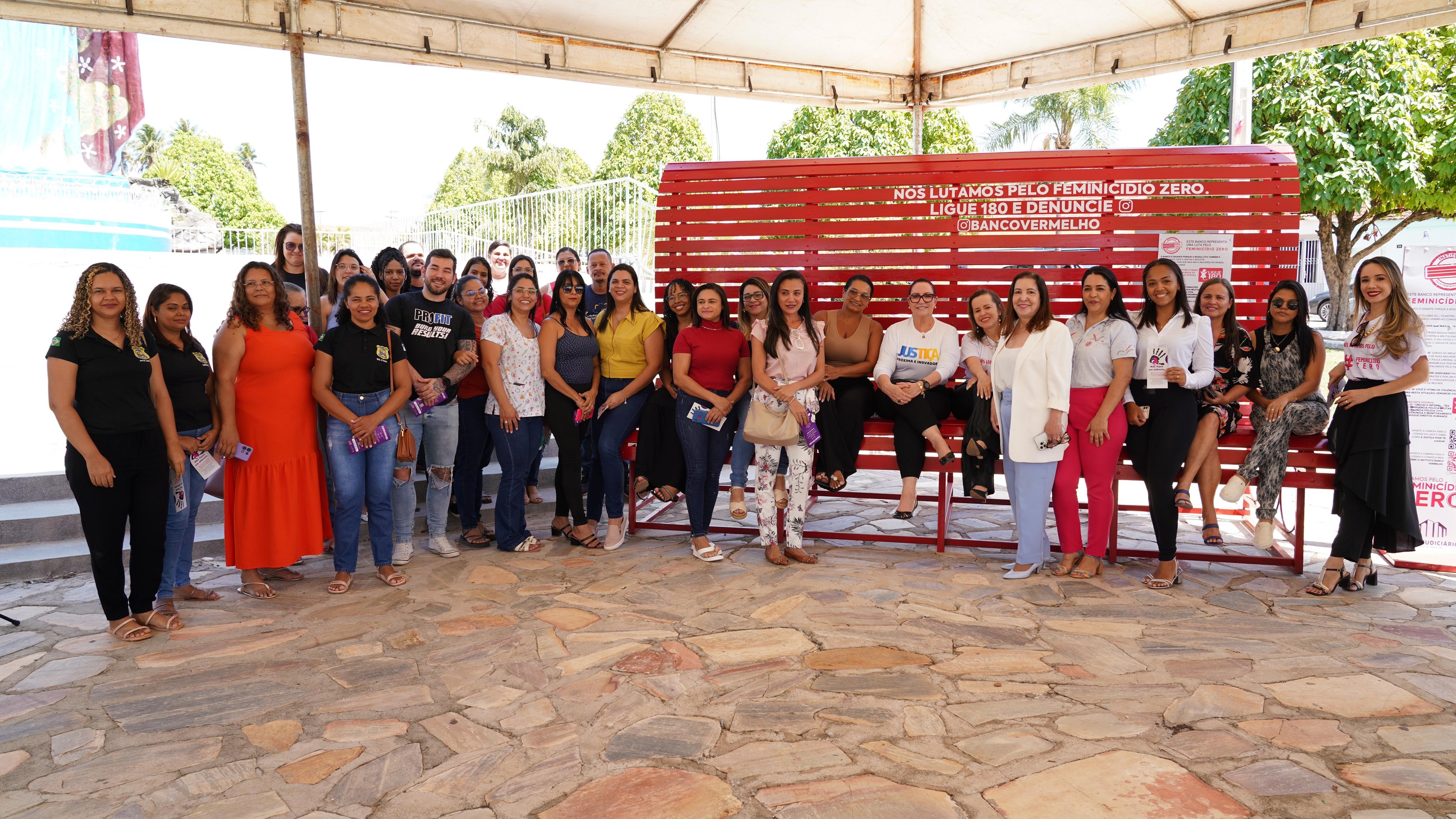 Uma iniciativa do Instituto Banco Vermelho (IBV), a ação prevê a instalação de um banco vermelho gigante - de 4 metros de comprimento por 1.80 de altura - por meio da Coordenadoria Estadual da Mulher em Situação de Violência Doméstica e Familiar (Cevid). O objetivo é sensibilizar a população sobre a importância do enfrentamento à violência contra a mulher e do combate ao feminicídio. A ideia nasceu da experiência pessoal de duas mulheres de Recife (PE), a publicitária e ativista Andrea Rodrigues e a executiva de marketing Paula Limongi, que perderam amigas, assassinadas por seus companheiros.