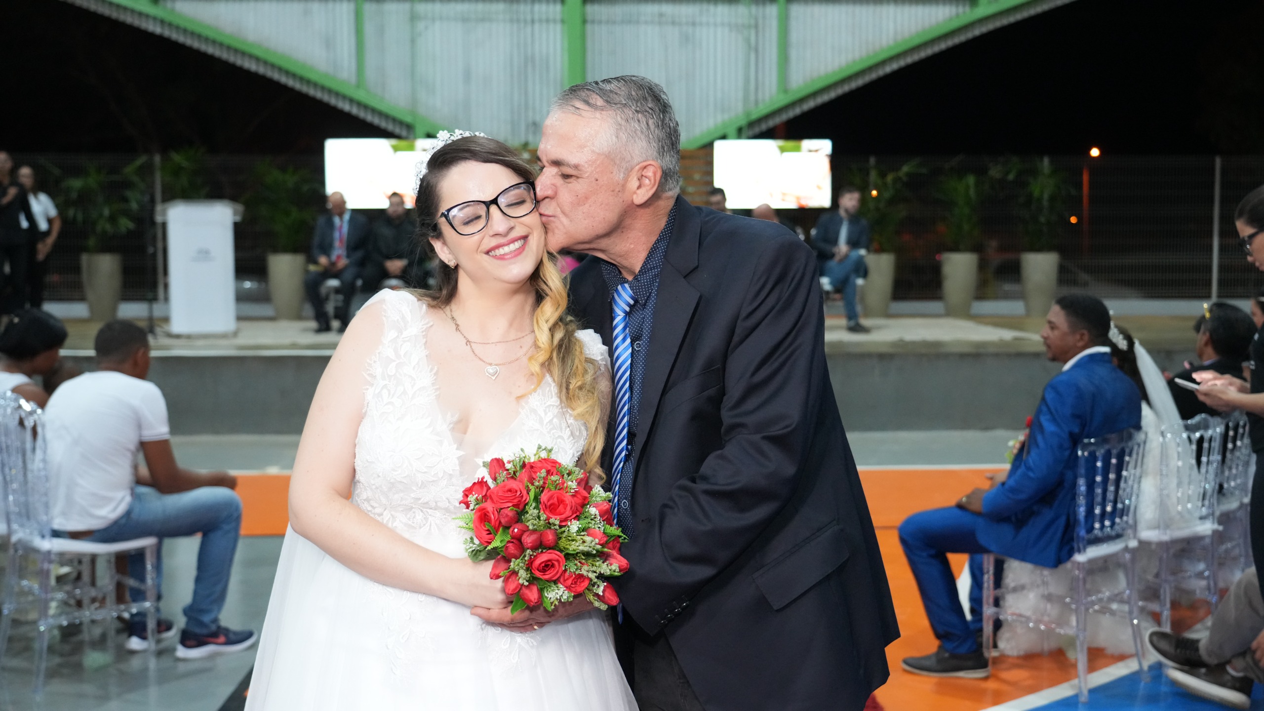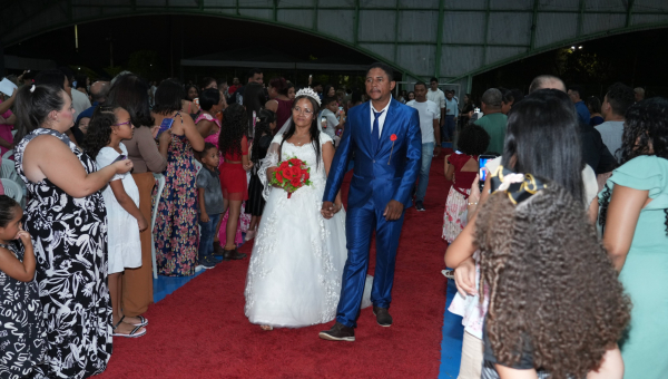 O Casamento Comunitário foi celebrado pelo juiz de paz Edison Sousa, que finalizou o matrimônio com o tradicional beijo dos noivos: declarando-os, enfim, casados!