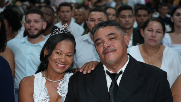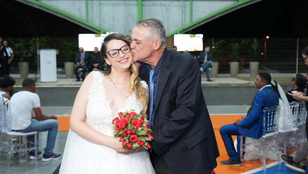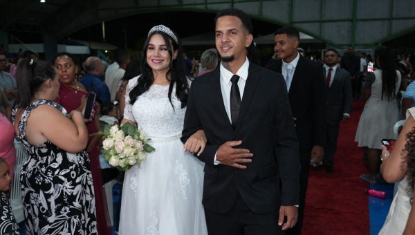 “Para mim é um sonho. Eu nunca fui casado, então, para mim, é uma satisfação, uma honra e um privilégio tê-la ao meu lado. E ela ter aceitado casar comigo me faz sentir muito honrado. Espero que dure até o mundo acabar”, disse o corretor de imóveis Rogério Sandim, 50 anos, que se casou com a advogada Patrícia Sandim, 29 anos.