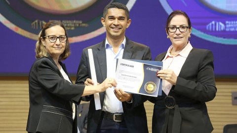 Representantes dos delegatários,  Lívia, José Pereira e Geraldo Moromizato falaram da honra em receber o prêmio e parabenizaram a Corregedoria pelos serviços prestados aos notariais. Para os quais, o incentivo oferecido por meio da premiação só os impulsionam a buscar cada vez mais a qualidade no atendimento prestado à sociedade.