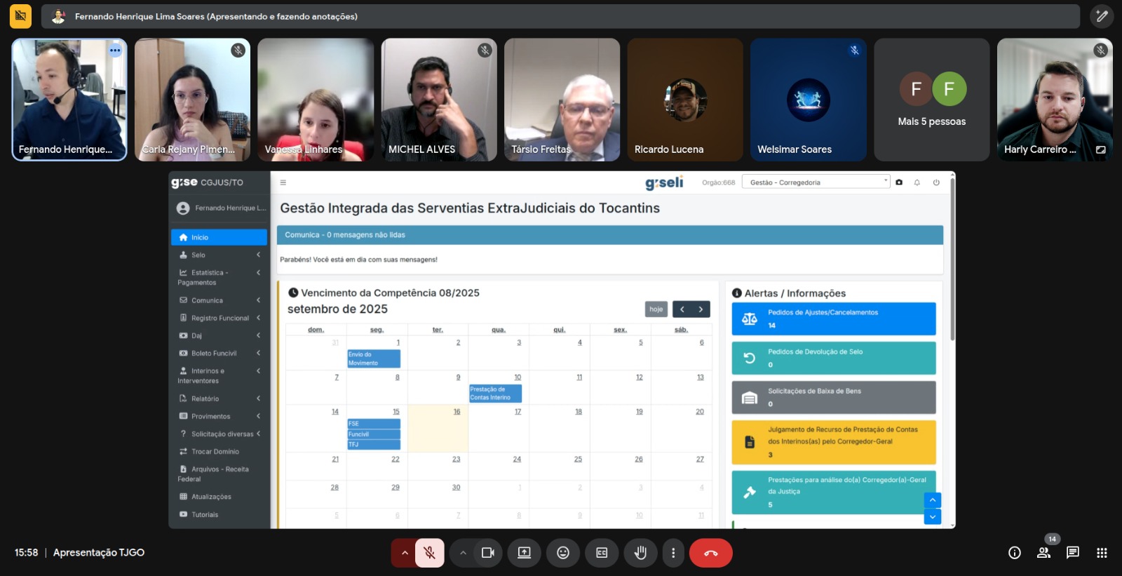 A Corregedoria-Geral da Justiça do Tocantins (CGJUS/TO) apresentou nesta terça-feira (16/09) o Sistema de Gestão Integrada das Serventias Extrajudiciais (Gise) e a Inteligência Artificial Giseli a magistrados e servidores da Corregedoria da Justiça do Estado de Goiás. https://www.tjto.jus.br/giseli