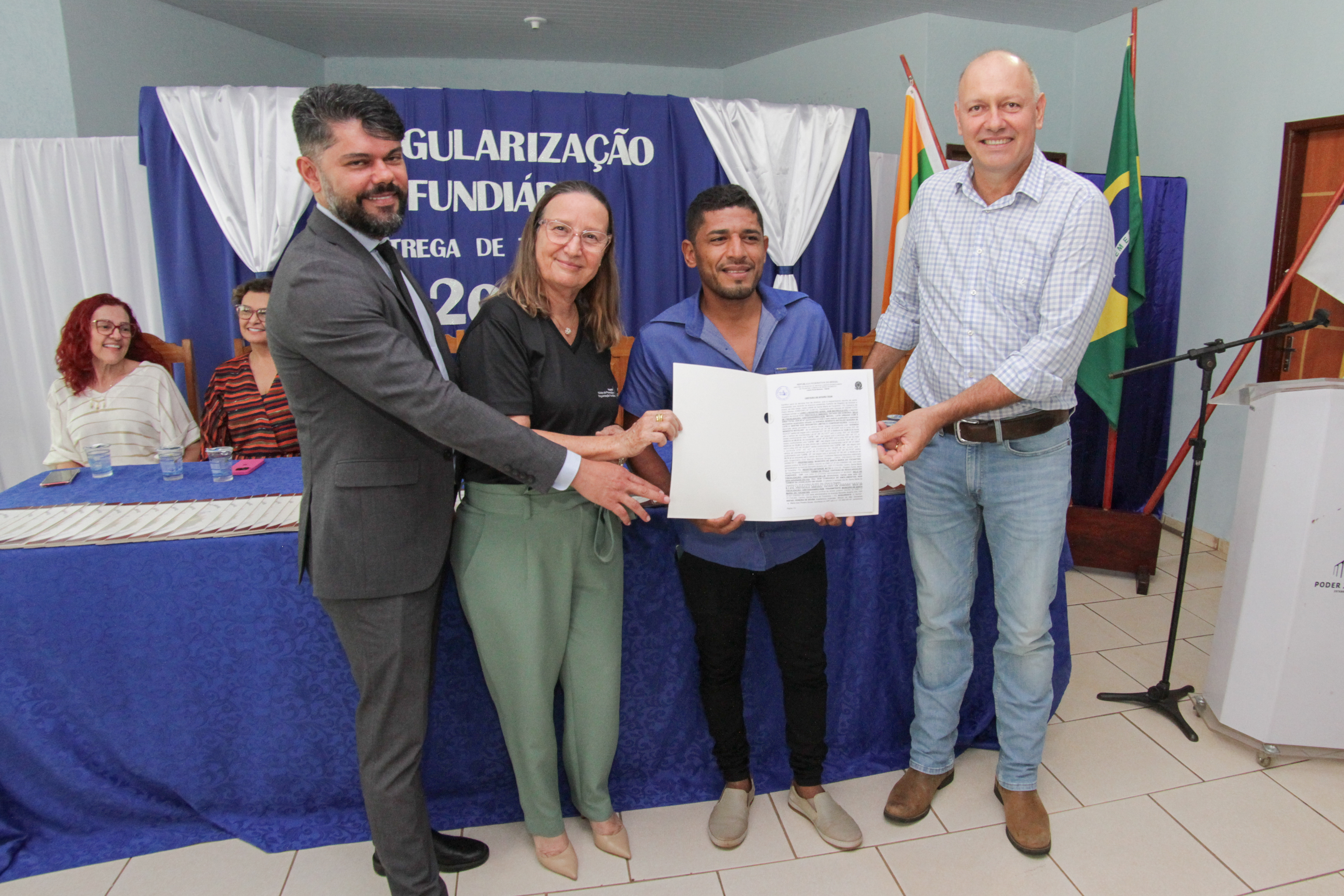 Também compuseram o dispositivo de honra desta solenidade: a diretora imobiliária e comercial do Tocantins Parcerias, órgão do governo estadual, Zélia Bandeira Barros; e a registradora do Cartório de Registro de Imóveis de Santa Maria do Tocantins, Lorena Peclat Barbosa.