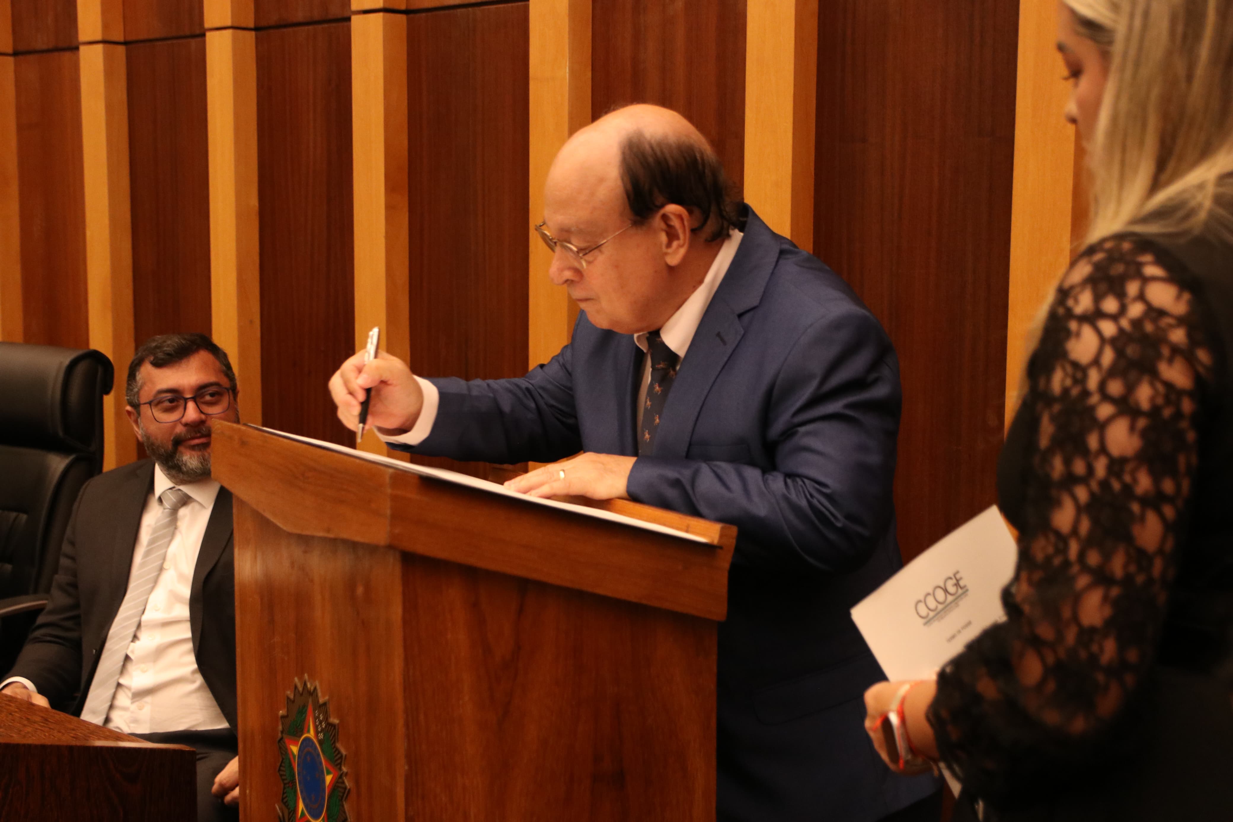 Compondo a mesa de honra, prestigiaram a solenidade o Ministro do Superior Tribunal de Justiça (STJ) Mauro Campbell; o Governador do Estado do Amazonas, Wilson Miranda Lima; a Primeira Vice-Presidente eleita do CCOGE e Corregedora-Geral da Justiça de Sergipe, Desembargadora Ana Bernadete Leite de Carvalho Andrade; o Primeiro Secretário eleito do COCGE e Corregedor-Geral da Justiça de Goiás, Desembargador Leandro Crispim; o Segundo Secretário eleito do COCGE e Corregedor-Geral da Justiça do Paraná, Desembargador Hamilton Mussi Corrêa; e o Segundo Tesoureiro eleito do CCOGE e Corregedor-Geral da Justiça do Acre, Desembargador Samoel Martins Evangelista.