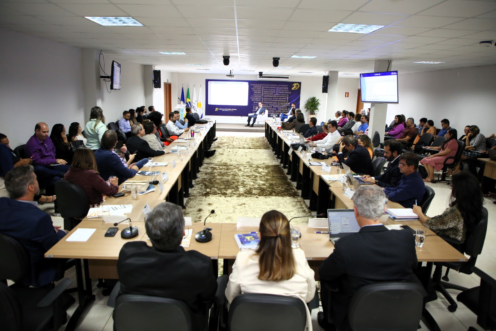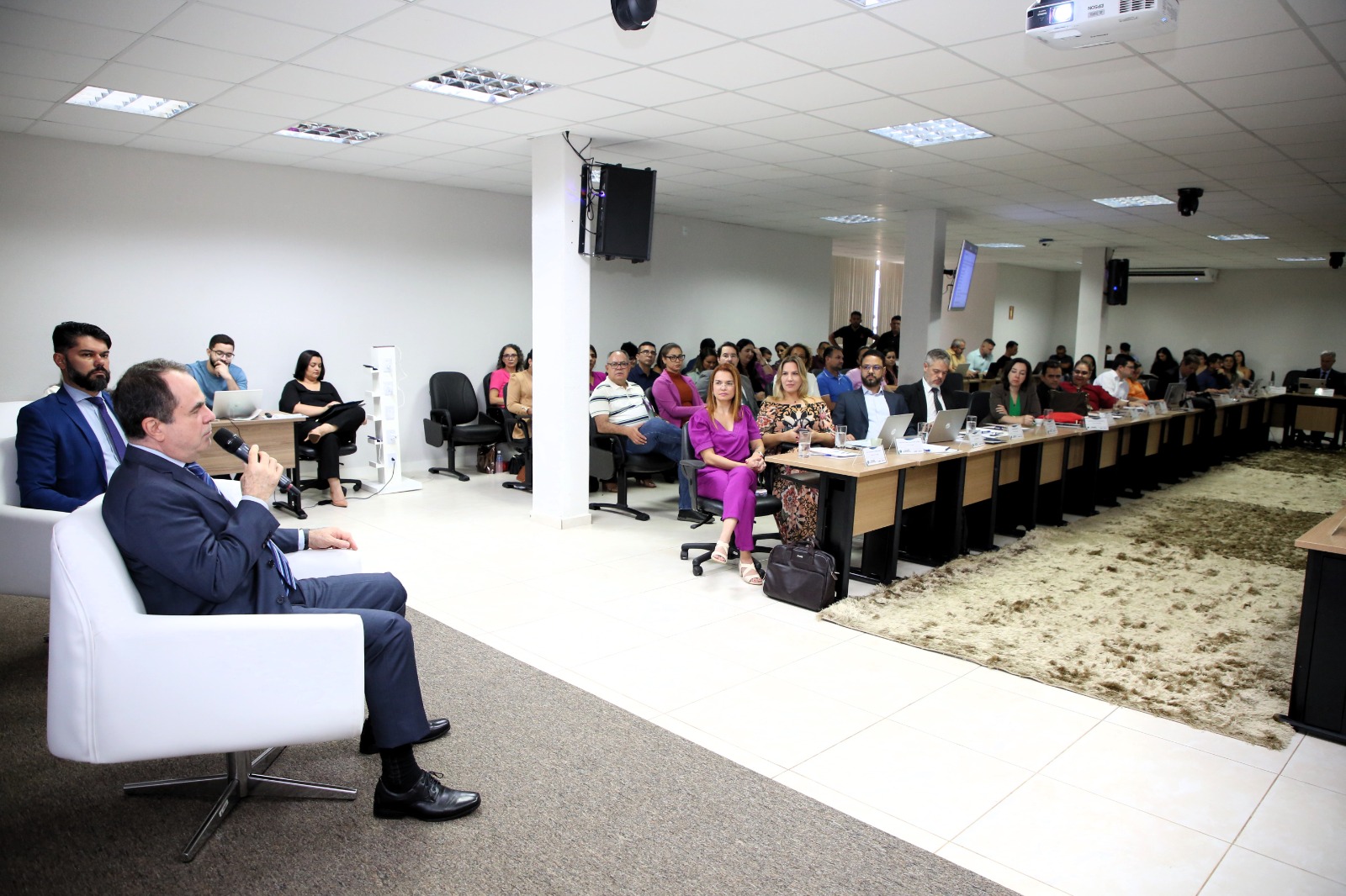 Em depoimento, o desembargador apresentou aos presentes informações e dados importantes sobre a Esmat. Como, por exemplo, as atividades realizadas em 2023 por eixos temáticos e modalidade; o quantitativo de cursos e eventos desenvolvidos; e os números de capacitados nas pós-graduações stricto e lato sensu.