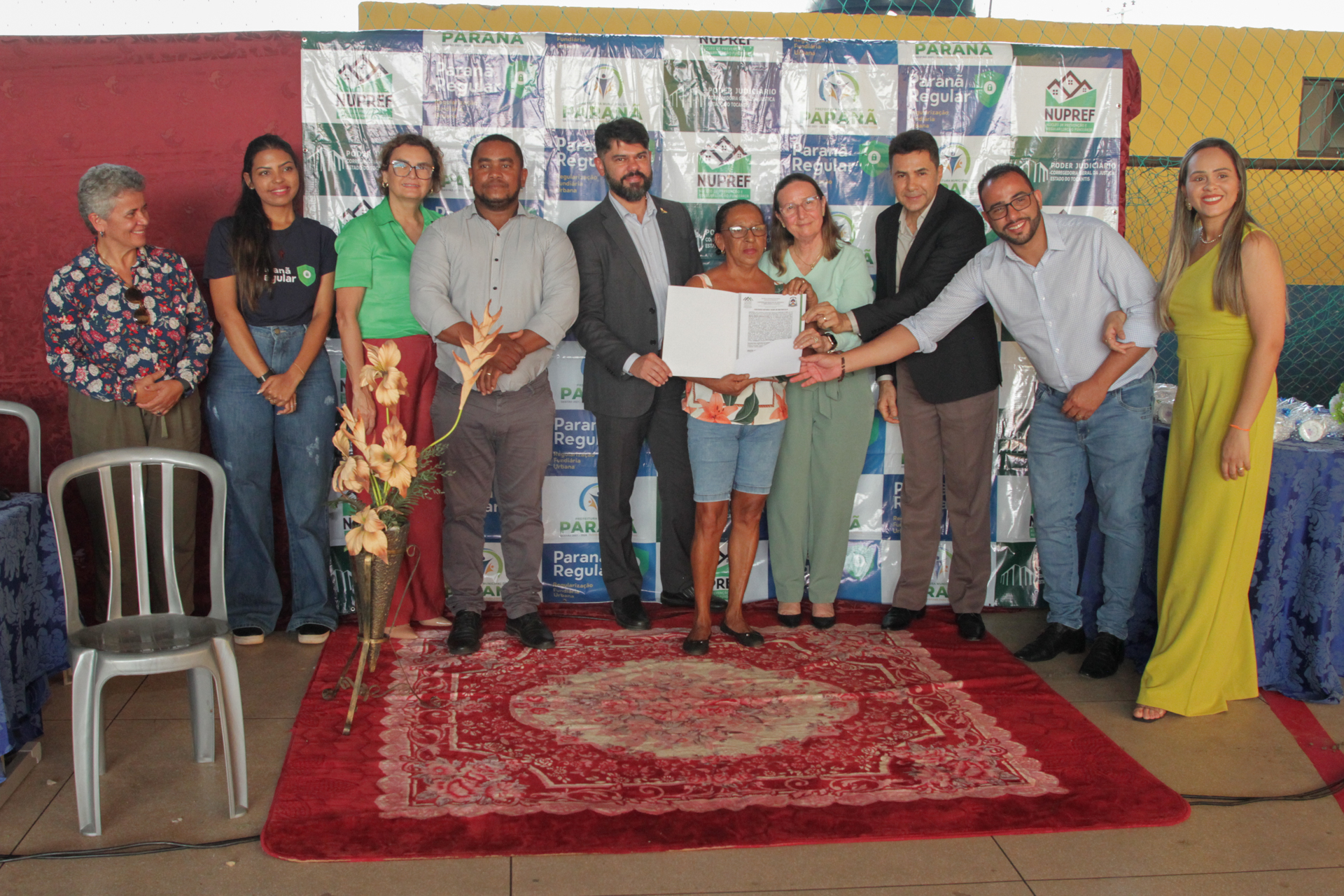 Encerrando a agenda de entregas de títulos de regularização fundiária do mês de novembro, nesta terça-feira (28/11) foram beneficiados 134 moradores do setor Aeroporto, no município de Paranã. Ação é resultado da parceria da Corregedoria-geral da Justiça do Tocantins (CGJUS) com a Prefeitura, cartório de Registro de Imóveis e Companhia Imobiliária de Participações, Investimentos e Parcerias (Tocantins Parcerias).