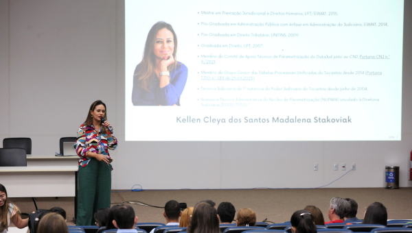 Ainda no primeiro dia de curso, os juízes Fabiano Gonçalves Marques e Cledson José Dias Nunes abordaram temas como a gestão das metas nacionais do Conselho Nacional de Justiça (CNJ) e apresentaram os manuais de orientação elaborados pelo Nupara. Já a facilitadora Darllanne Cristina dos Santos Ferreira Tacho apresentou um painel sobre a gestão das comarcas, destacando a visão geral e as principais funcionalidades; e a facilitadora Kellen Cleya Madalena falou sobre cadastramento e movimentação processual para o cumprimento das metas nacionais.