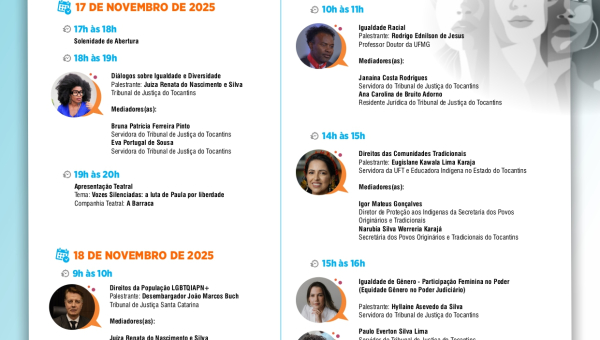 A abertura será conduzida pela juíza Renata do Nascimento e Silva, coordenadora da iniciativa, que irá abordar os sentidos contemporâneos de igualdade e a necessidade de consolidar espaços permanentes de diálogo sobre direitos e garantias de grupos historicamente vulnerabilizados.