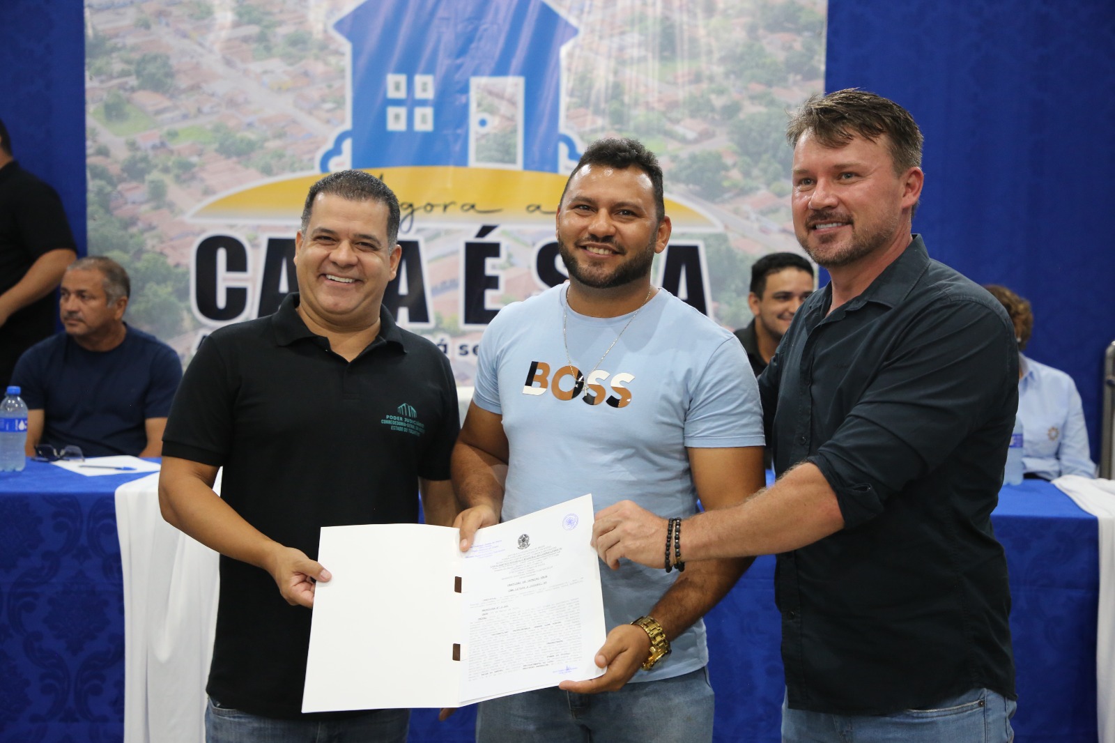 “Vocês agora têm a posse e podem dizer que essa casa é minha. O nosso trabalho é feito com esse único fim: levar segurança jurídica e dignidade. E hoje vocês têm a alegria de receber o título, e nós também estamos muito felizes por participar desse processo e contribuir para melhorar a vida de vocês”, afirmou o juiz coordenador do Núcleo de Prevenção e Regularização Fundiária (Nupref), Jordan Jardim.