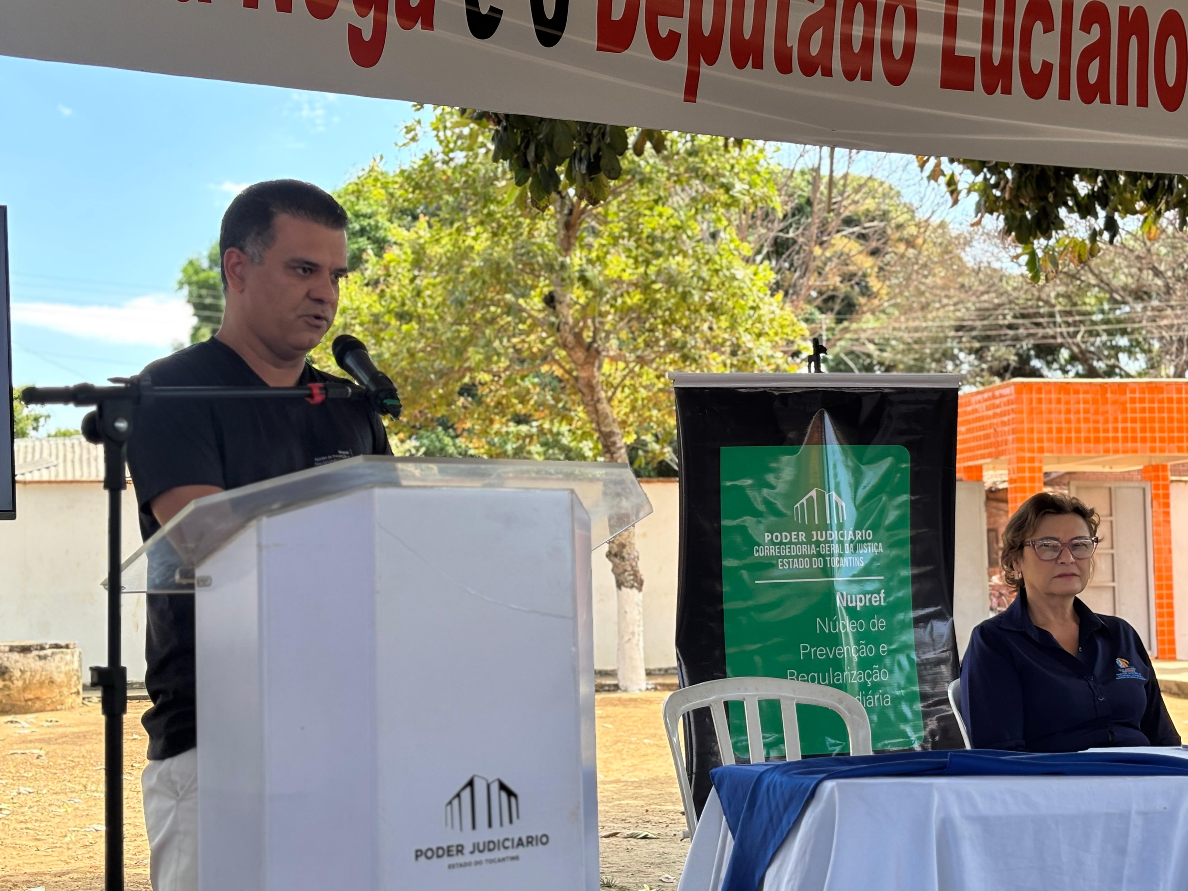 Com a frase simbólica: “é chegado o momento mais aguardado deste dia”, teve início a solenidade, que contemplou 45 moradores do povoado Esperança Bendita, em Goianorte, e 71 dos setores Centro e Nova Tupirama, no município de mesmo nome. A ação é resultado de uma parceria entre o Poder Judiciário do Tocantins, por meio do Núcleo de Prevenção e Regularização Fundiária (Nupref) da Corregedoria-Geral da Justiça (CGJUS), as prefeituras locais, o Governo do Estado e os Cartórios de Registro de Imóveis.