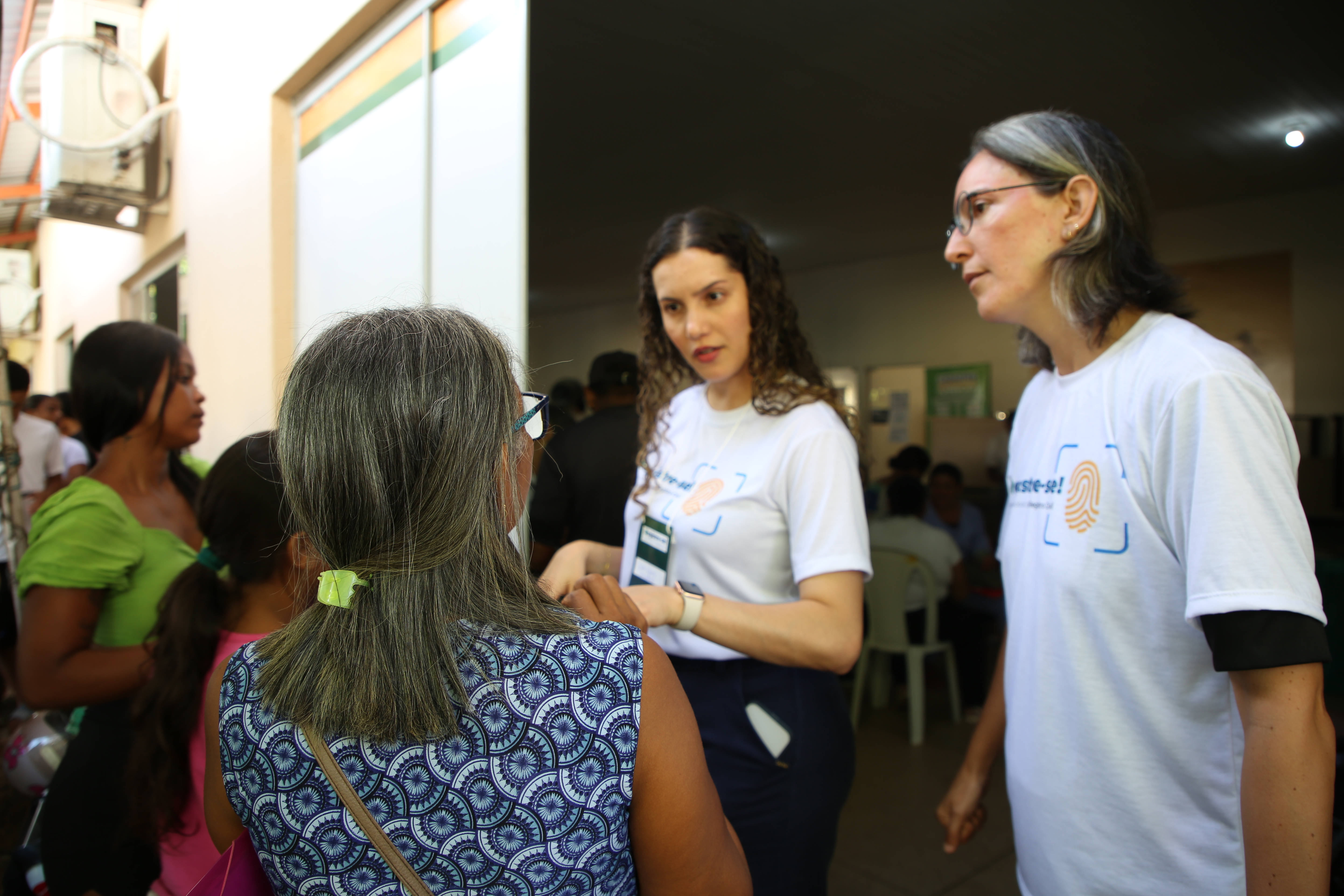 Ela estava acompanhada de Ana Batista dos Santos e Auzira Francisca de Souza, duas mulheres sob seus cuidados. As identidades que possuem são antigas, de 1995, e já não atendem às exigências atuais. A necessidade de atualização surgiu após uma tentativa de atendimento no Instituto Nacional do Seguro Social (INSS), onde foi orientada a trocar os documentos. “Hoje acordei cedo, coloquei ela na cadeira e vim. Não é fácil, mas quem precisa tem que aproveitar e vir. Estou aqui desde às 6h”, afirma.