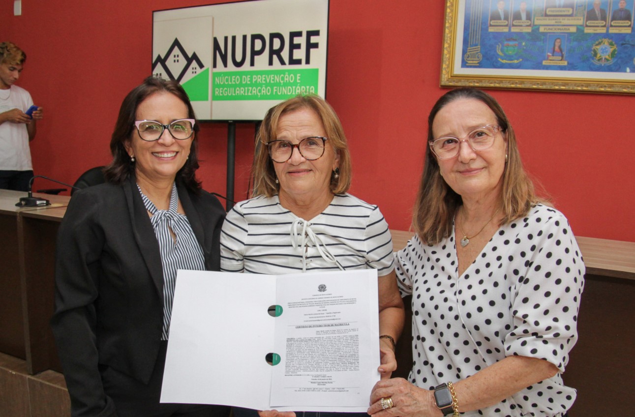Ainda durante a solenidade, o juiz coordenador do Nupref, Wellington Magalhães, destacou que o objetivo da Corregedoria é levar cidadania e dignidade às pessoas, e frisou os benefícios que o título de propriedade traz ao dono do imóvel regularizado. “A Reurb proporciona a possibilidade de melhorar a qualidade de vida de quem recebe o título, seja por meio da inclusão no sistema financeiro para aquisição de financiamentos para construção ou reforma da moradia; garantia que amanhã essa casa vai poder ser transferida para os filhos sem nenhuma dificuldade, que é o direito sucessório; além de outros benefícios para a cidade, impulsionando a economia e o acesso a serviços básicos”, disse.