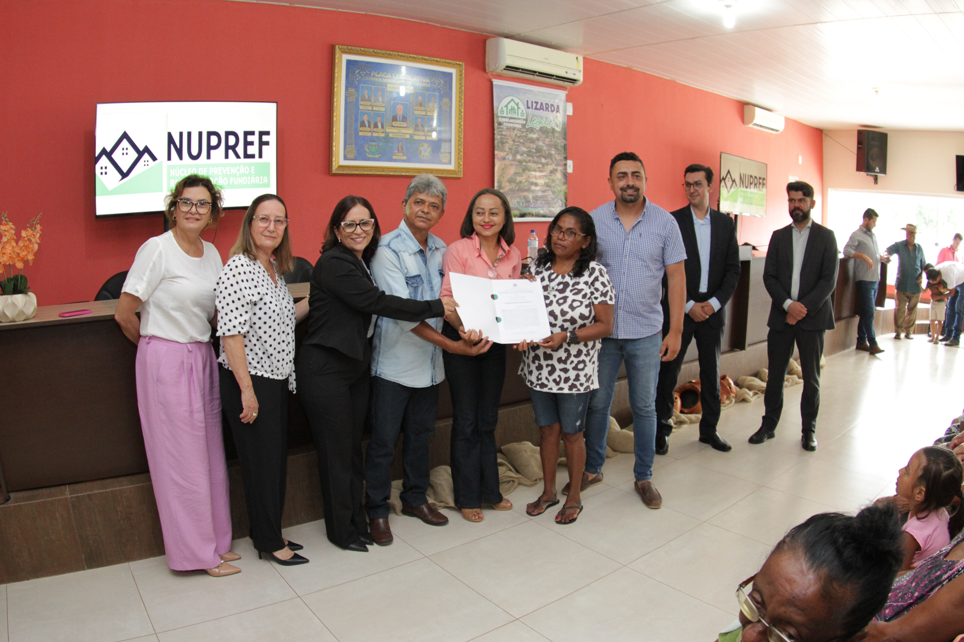 Acompanhando as entregas de títulos do Núcleo de Prevenção e Regularização Fundiária do Tocantins (Nupref/CGJUS), a corregedora-geral da Justiça do Tocantins, desembargadora Maysa Vendramini Rosal, participou da solenidade em Lizarda e destacou aos moradores dos setores Buriti e Centro, beneficiados com o programa, a importância do trabalho realizado para “proporcionar segurança jurídica a quem recebe o título, dando a dignidade merecida a família tocantinense”. Conforme destacou a corregedora, o Nupref vem realizando um trabalho de grande efetividade em todo o estado graças a parceria de entes públicos. “A Reurb não é uma conquista isolada; é resultado de uma união de forças e a atuação do Nupref como colaborador e orientador, dando todo o apoio técnico necessário para a execução das políticas públicas da regularização fundiária é fundamental para proporcionar segurança jurídica àquele que recebeu o título de propriedade devidamente registrado no Cartório de Registro de Imóveis”, afirmou.