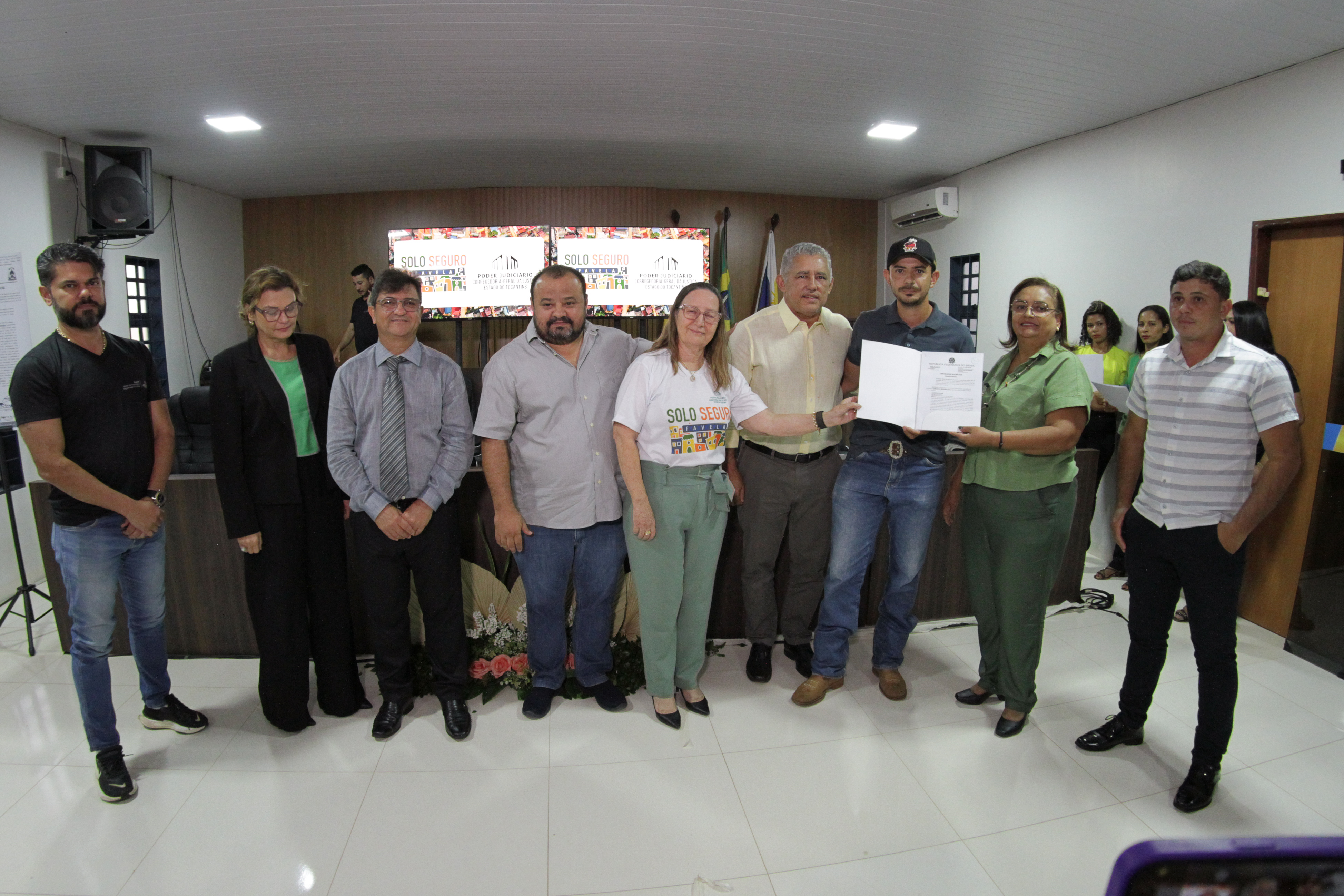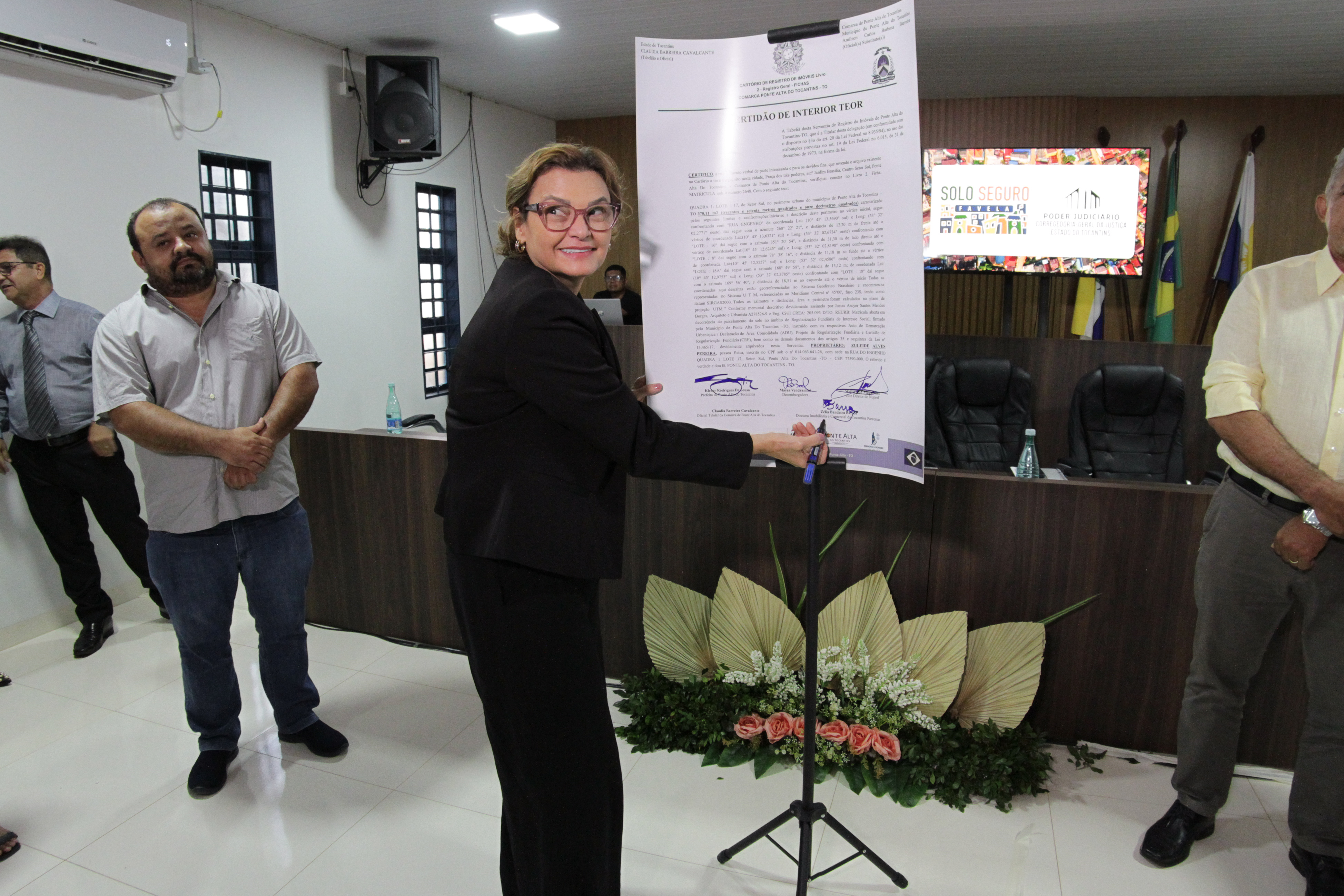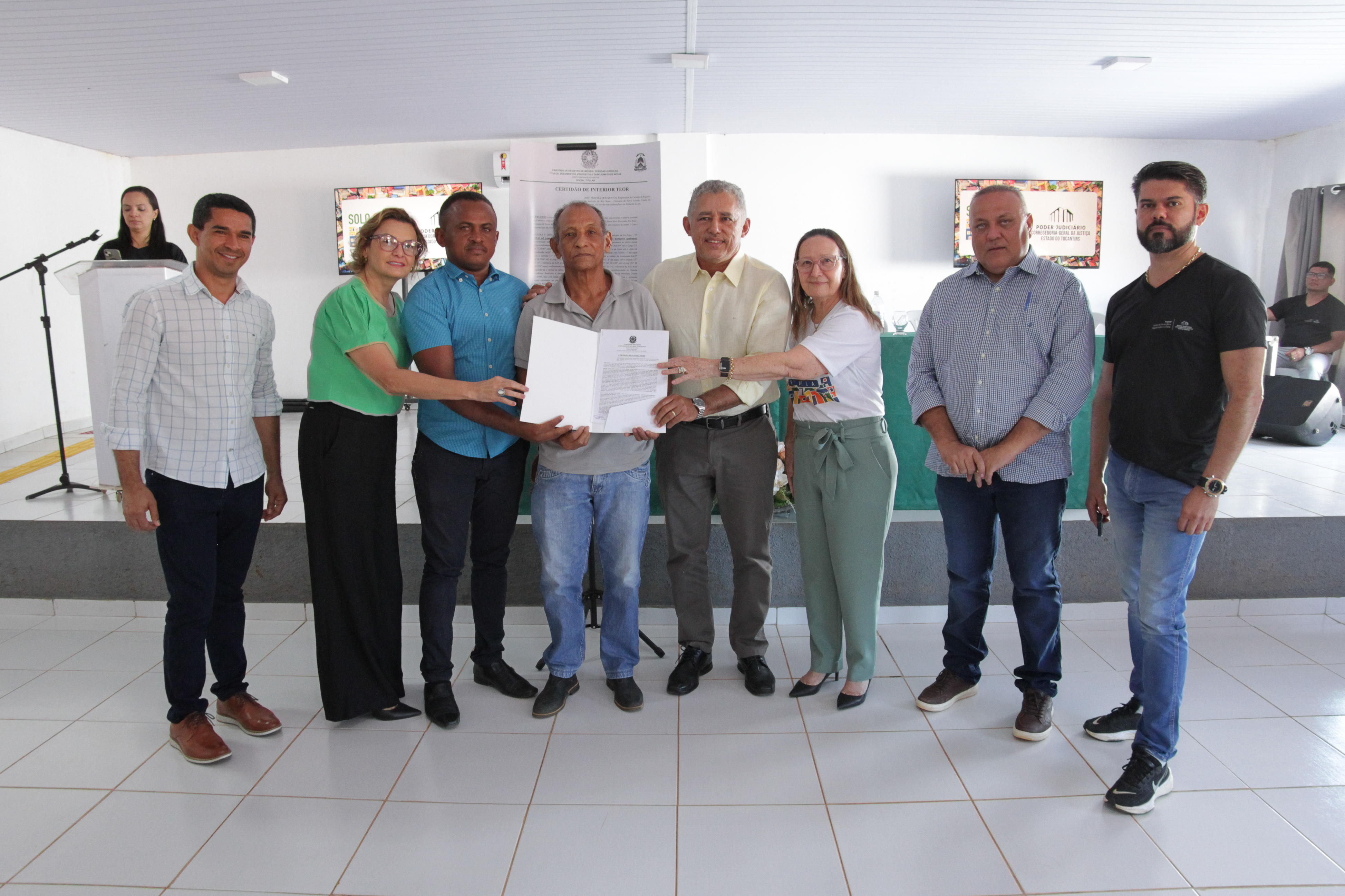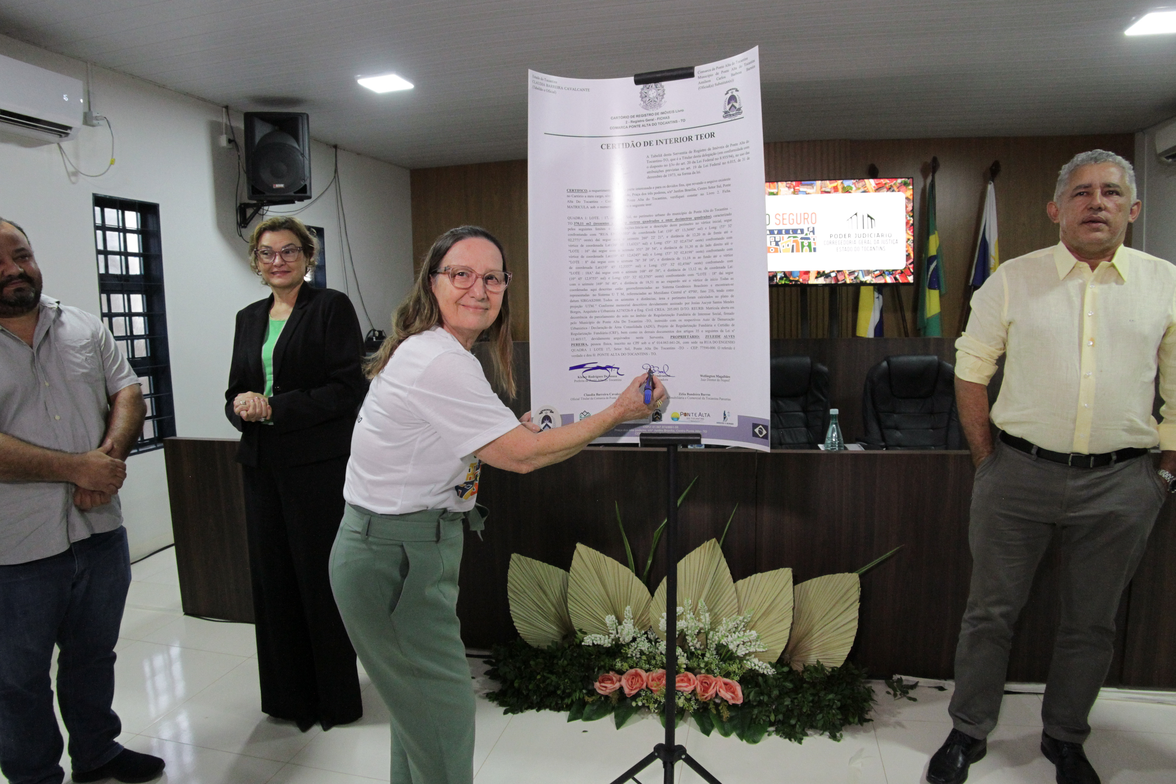 Prestigiando o momento de entrega de títulos, o juízo diretor do Foro da Comarca de Ponte Alta do Tocantins, Jorge Amâncio de Oliveira, lembrou os avanços conquistados com a Lei da Regularização Fundiária (lei 13.365) e destacou que a iniciativa é o reconhecimento da função social da propriedade e do direito à dignidade humana.