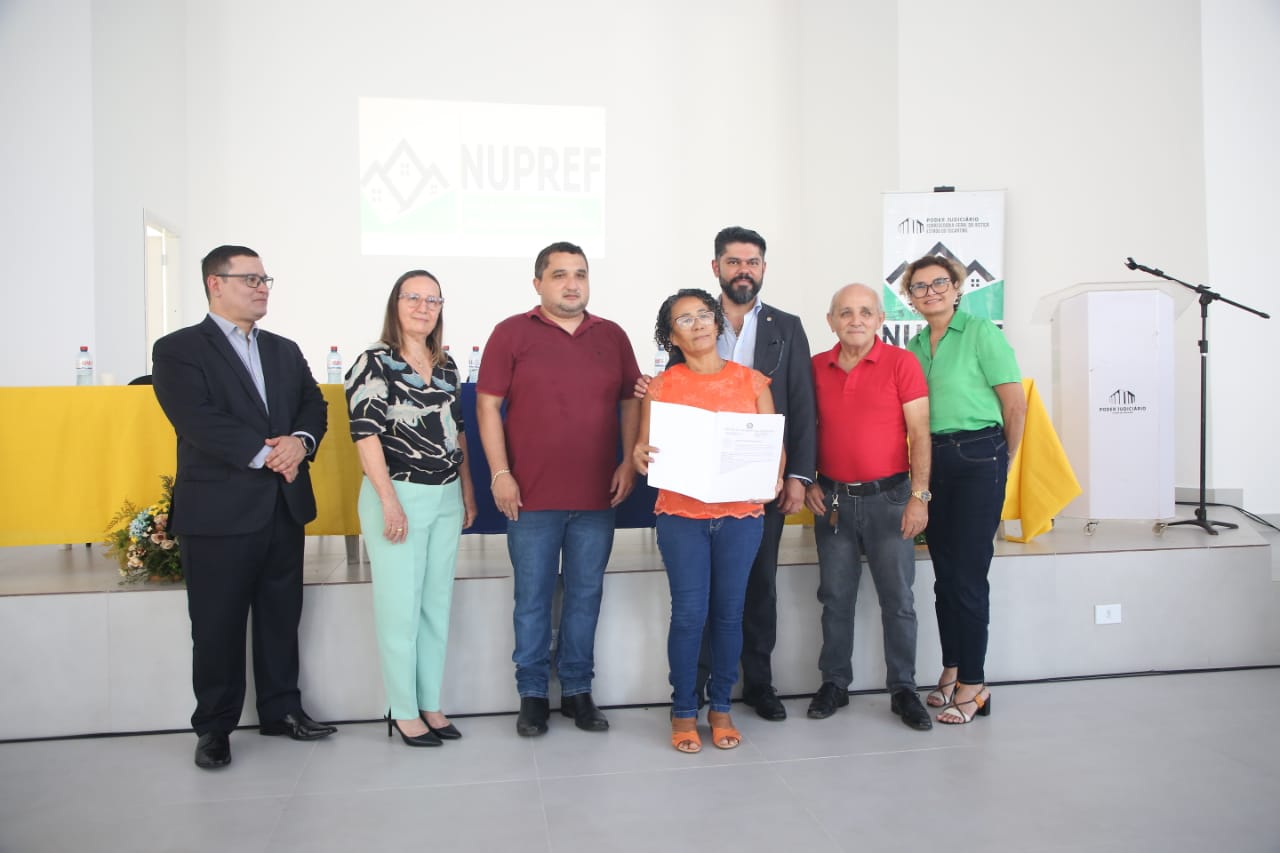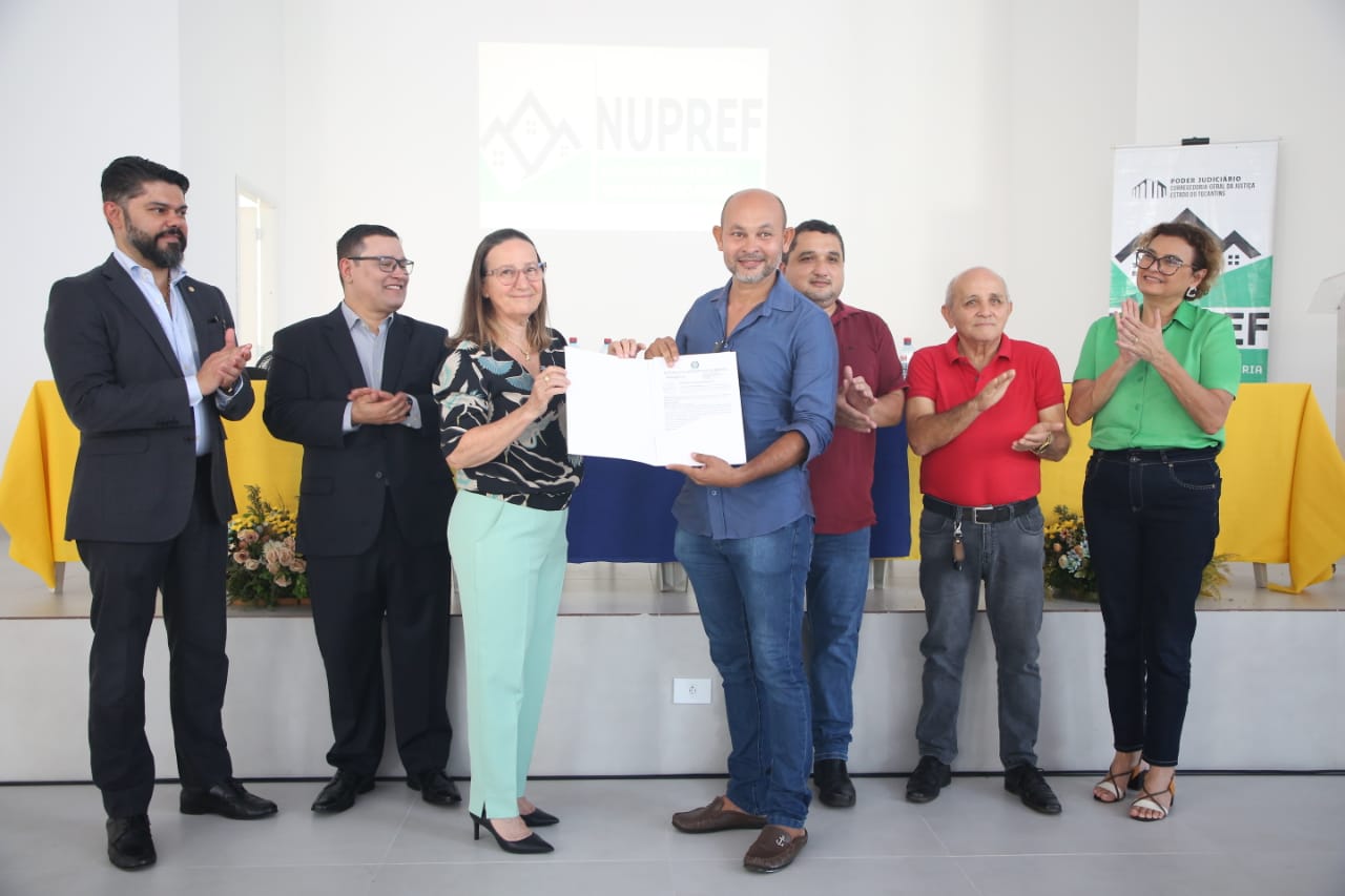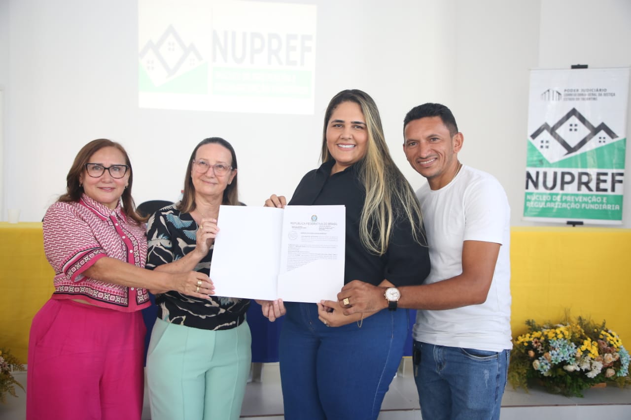 Mais de 200 títulos de legitimação fundiária foram entregues, nesta segunda-feira (30/10), nos municípios de Sitio Novo e Carrasco Bonito, região do Bico do Papagaio. Ação é resultado do trabalho realizado pelo Núcleo de Prevenção e Regularização Fundiária da Corregedoria-Geral da Justiça do Tocantins (Nupref/CGJUS) em parceria com os Municipais, cartórios de Registro de Imóveis e Tocantins Parcerias.