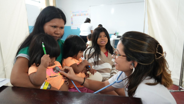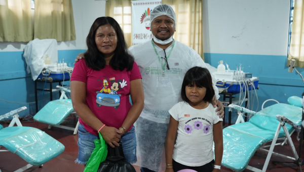 Quem também aproveitou os serviços da Semana Nacional de Saúde foi Nayara Javaé, que além de buscar atendimento clínico geral e de odontologia para ela, levou quatro de suas cinco filhas para consultas. As gêmeas Isabelly e Inaiara, de 1 ano e 11 meses, foram atendidas por uma médica pediatra pela primeira vez na vida e a mãe não escondeu a satisfação de ver suas filhas serem avaliadas.
