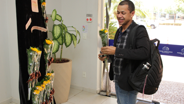 “Se você estava precisando de um motivo para sorrir, aqui está”! Com esta frase simples fixada em um mural de flores, os servidores(as) foram convidados a se presentearem com um girassol. E a flor, que significa felicidade, levou alegria para muita gente. A servidora Raylane Alencar ficou surpresa com o momento de interação e agradeceu a lembrança do cuidado que devemos ter com a saúde física e mental. “Esse momento foi especial, estava com uma carga de estresse muito grande. Obrigada”!