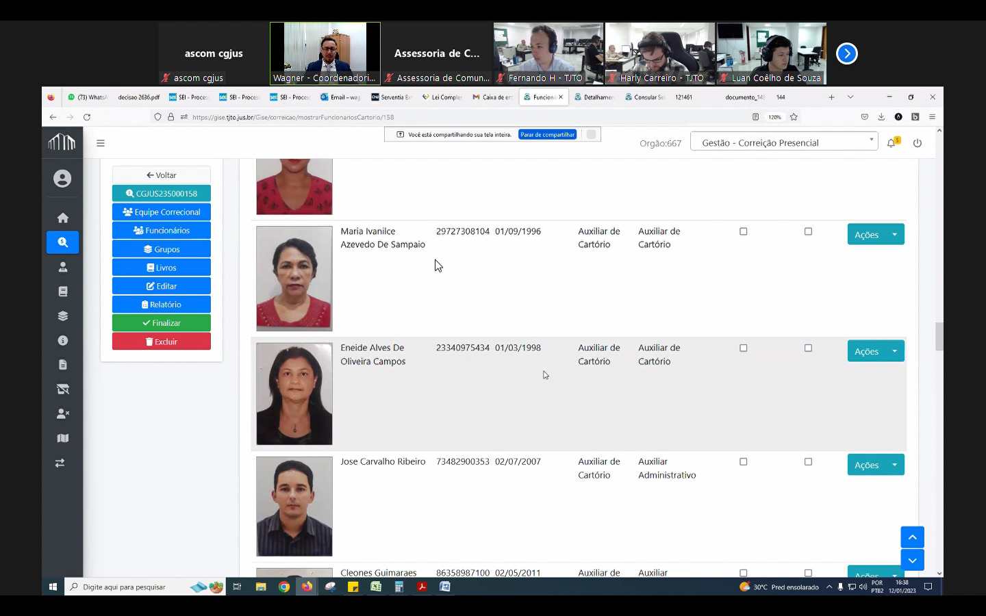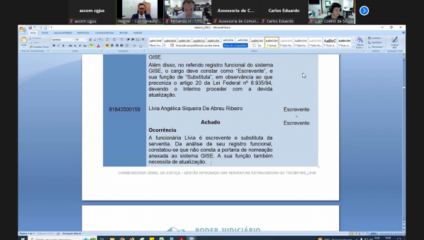 Ticiany Gedeon Maciel Palácio, Juíza Auxiliar da Corregedoria, Priscilla Ribeiro Moraes Rego de Souza, Analista Judiciária – Direito, Carlos Eduardo dos Santos Araujo, Analista Judiciário - Analista de Sistemas, Claudio Henrique Carneiro Sampaio Diretor de Informática e Automação.