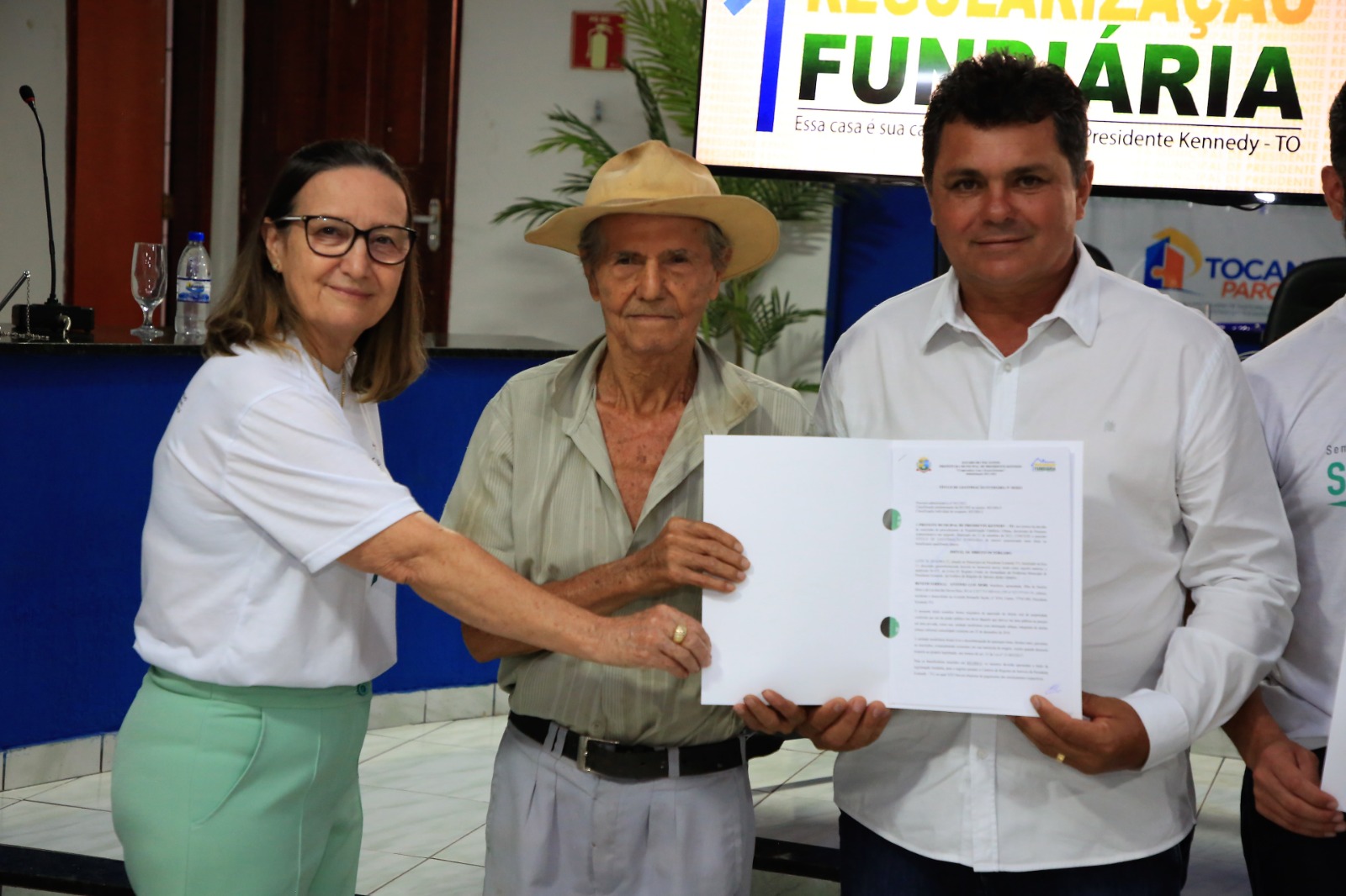 Participaram do evento, realizado na Câmara Municipal, a diretora imobiliária e comercial da Tocantins Parcerias, Zélia Bandeira; o secretário de Administração Olívio Carvalho, presidente da Comissão de Regularização Fundiária da cidade; e demais secretários municipais e vereadores de Presidente Kennedy.
