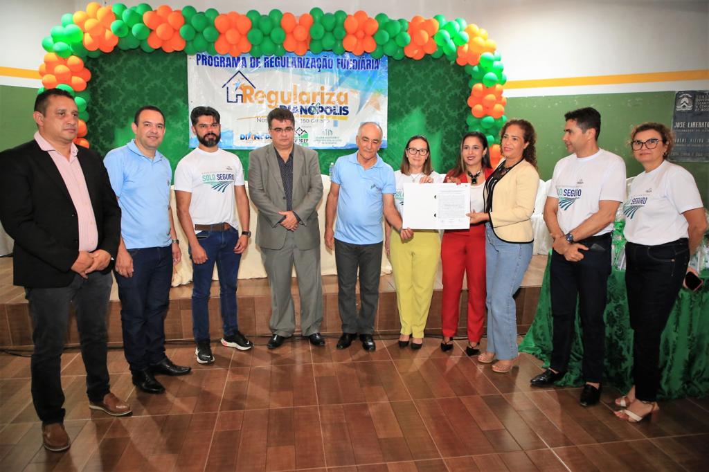 O sonho da conquista do título definitivo do imóvel tornou-se realidade para 316 moradores (as) do setor Nova Cidade II, em Dianópolis. Na noite desta terça-feira (29/8), eles (as) foram beneficiados com o documento que comprova a regularização fundiária das casas onde moram. A solenidade faz parte da programação da 1ª Semana Nacional de Regularização Fundiária - Solo Seguro, que acontece durante esta semana, em todos os estados da Amazônia Legal.