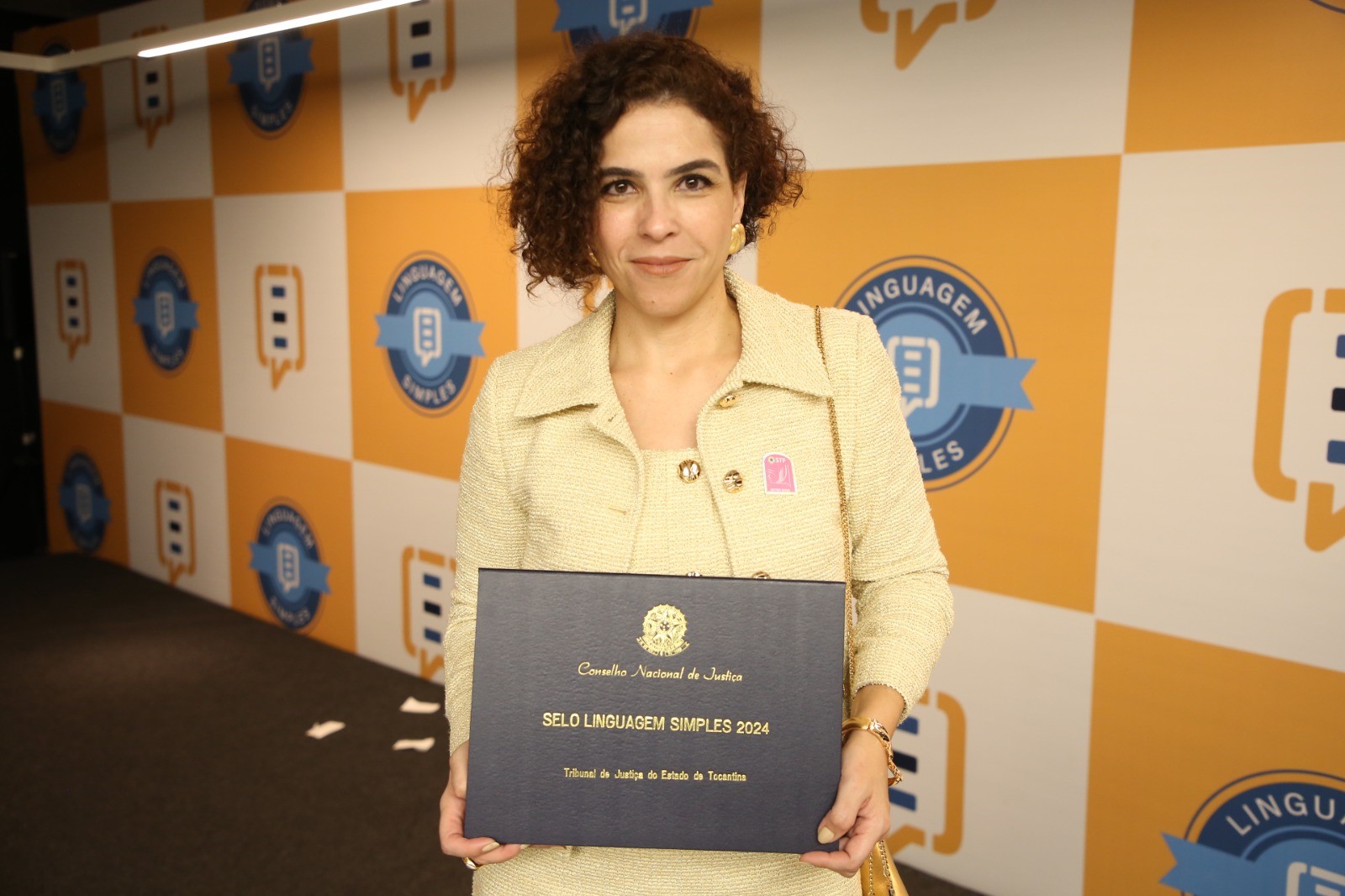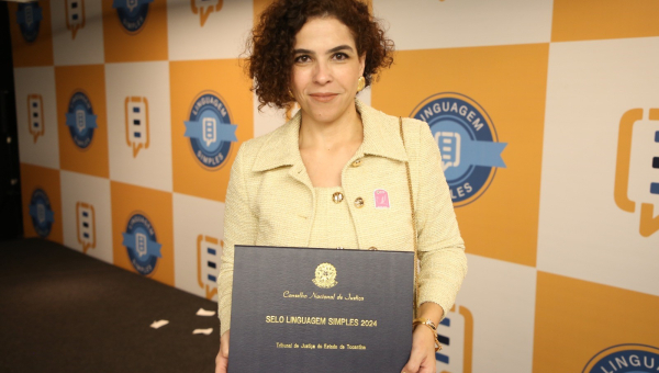 Reconhecimento pelo movimento de ser simples, acessível e mais próximo do cidadão(ã). A premiação inédita do Conselho Nacional de Justiça (CNJ) com o Selo Linguagem Simples 2024 veio diretamente das mãos da ministra do Supremo Tribunal Federal (STF), Cármen Lúcia, para a co-gestora do programa de Simplificação da Linguagem - SimplesTOC, Roberta Maciel. Na ocasião, ela estava representando o Tribunal de Justiça do Tocantins (TJTO). O evento aconteceu na semana em que se comemora o Dia Internacional da Linguagem Simples - 13 de Outubro.
