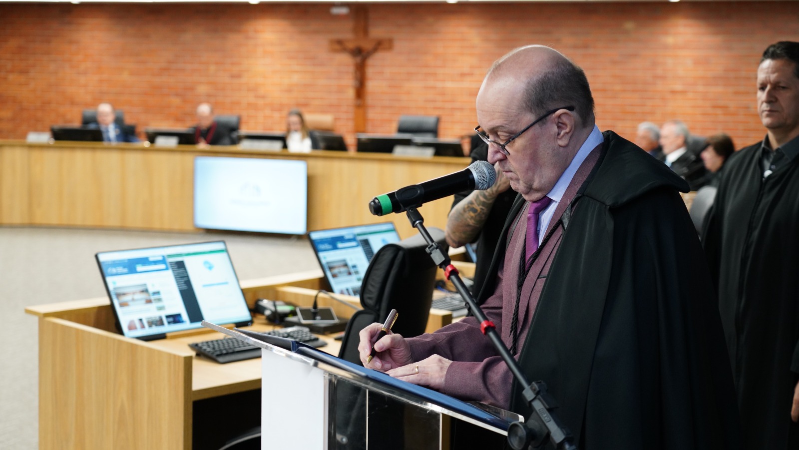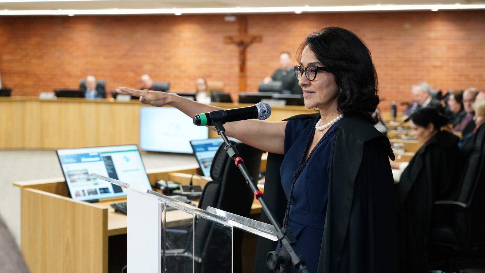 "Agradeço a todos os desembargadores e desembargadoras que fizeram de hoje uma data histórica e desejo boas-vindas aos novos integrantes, pois tenho a certeza de que o Tribunal de Justiça está mais forte e os senhores e senhoras chegam para somar e agregar ainda mais o nosso trabalho", afirmou a presidente.