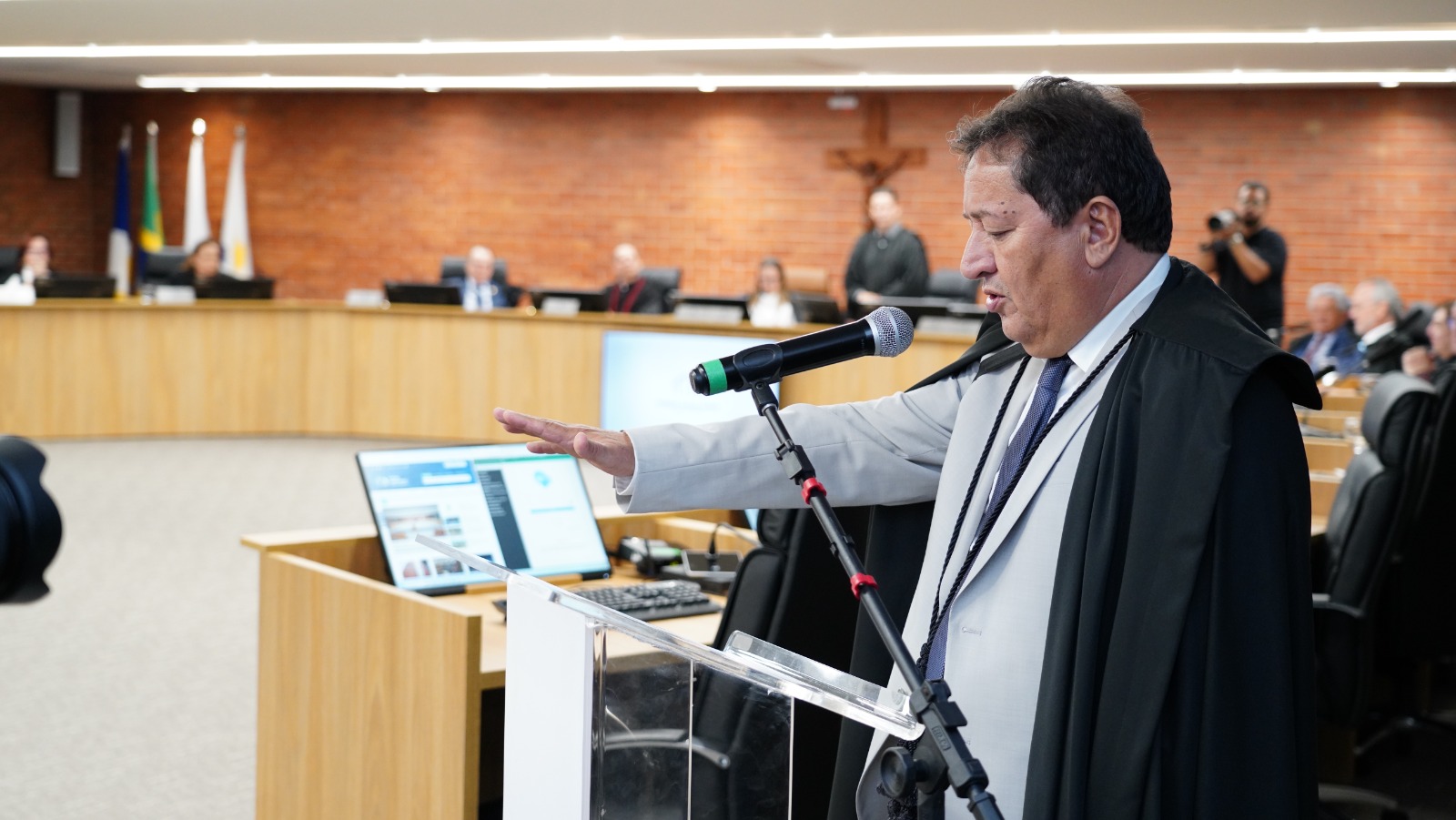 "O ponto nevrálgico que nos anima é este momento de ampliação do Tribunal com a vinda de ilustres colegas que durante sua carreira exerceram uma jurisdição de qualidade e que trazem do 1º  grau essa experiência salutar sobre onde de fato a jurisdição acontece no primeiro momento e que nos enriquece com essa nossa possibilidade de avançar na nossa missão institucional", disse.