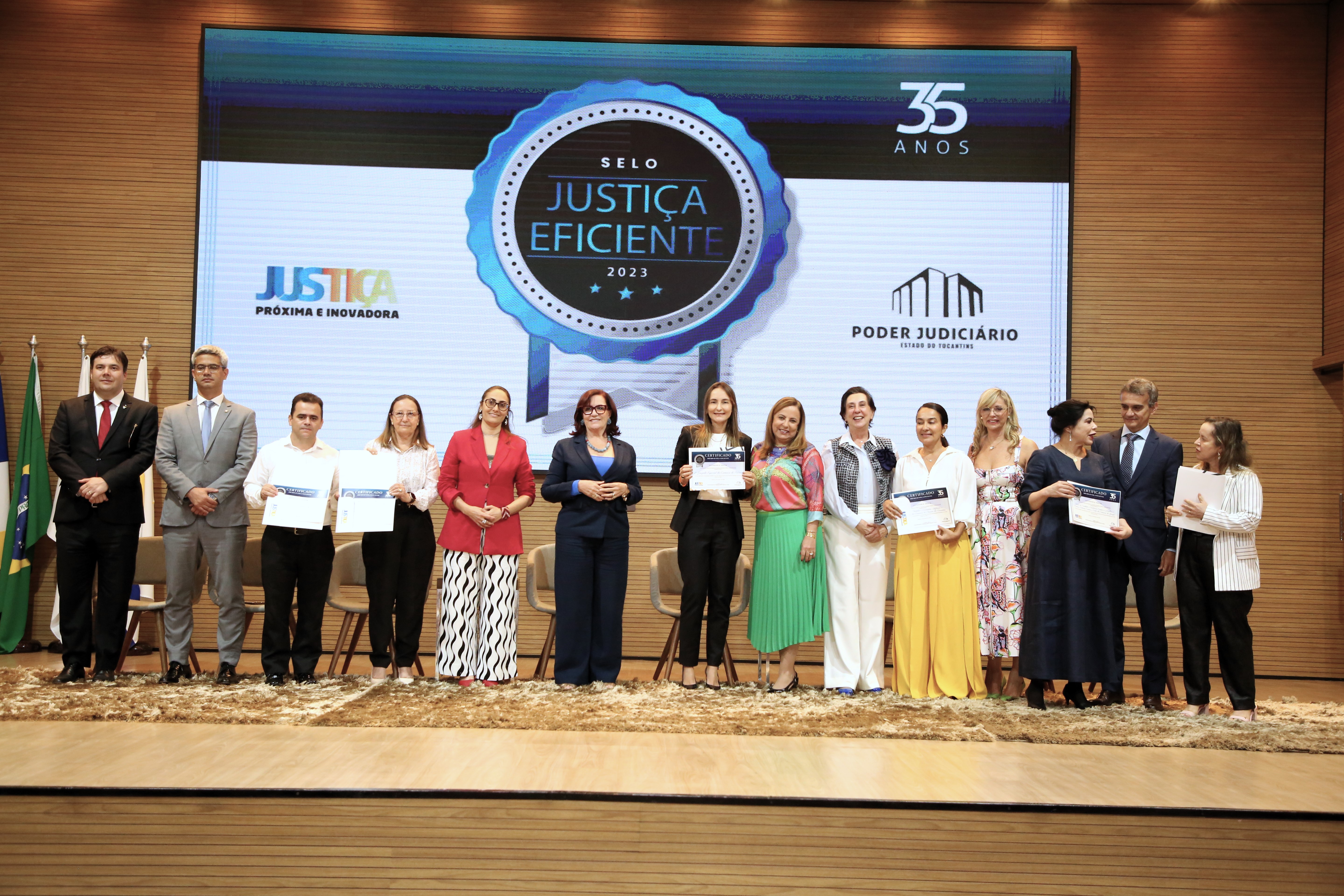 A 2ª Vara de Augustinópolis; a Comarca de Alvorada e a 1ª Vara de Feitos da Fazenda e Registros Públicos da Comarca de Palmas conquistaram o Selo Diamante. Receberam a premiação das mãos da presidente do TJTO, desembargadora Etelvina Maria Sampaio Felipe, respectivamente, os juízes Alan Ide Ribeiro da Silva; Fabiano Gonçalves Marques; e Océlio Nobre (representado pelo juiz Roniclay Alves de Morais e pela escrivã Cláudia Bittencourt).